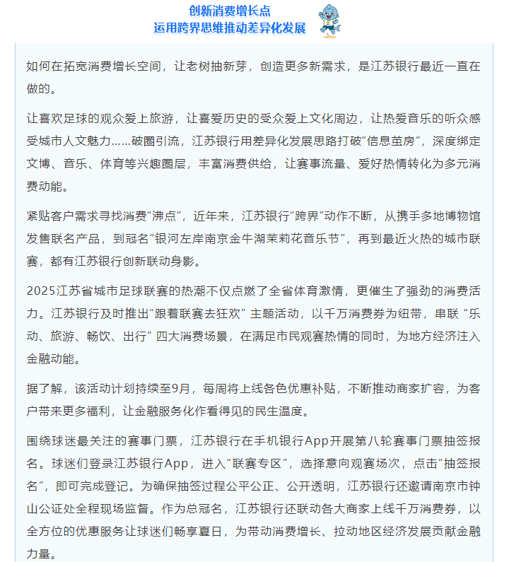 将“联赛火”变为“消费火” ,江苏银行助力激活消费动能,拉动经济增长